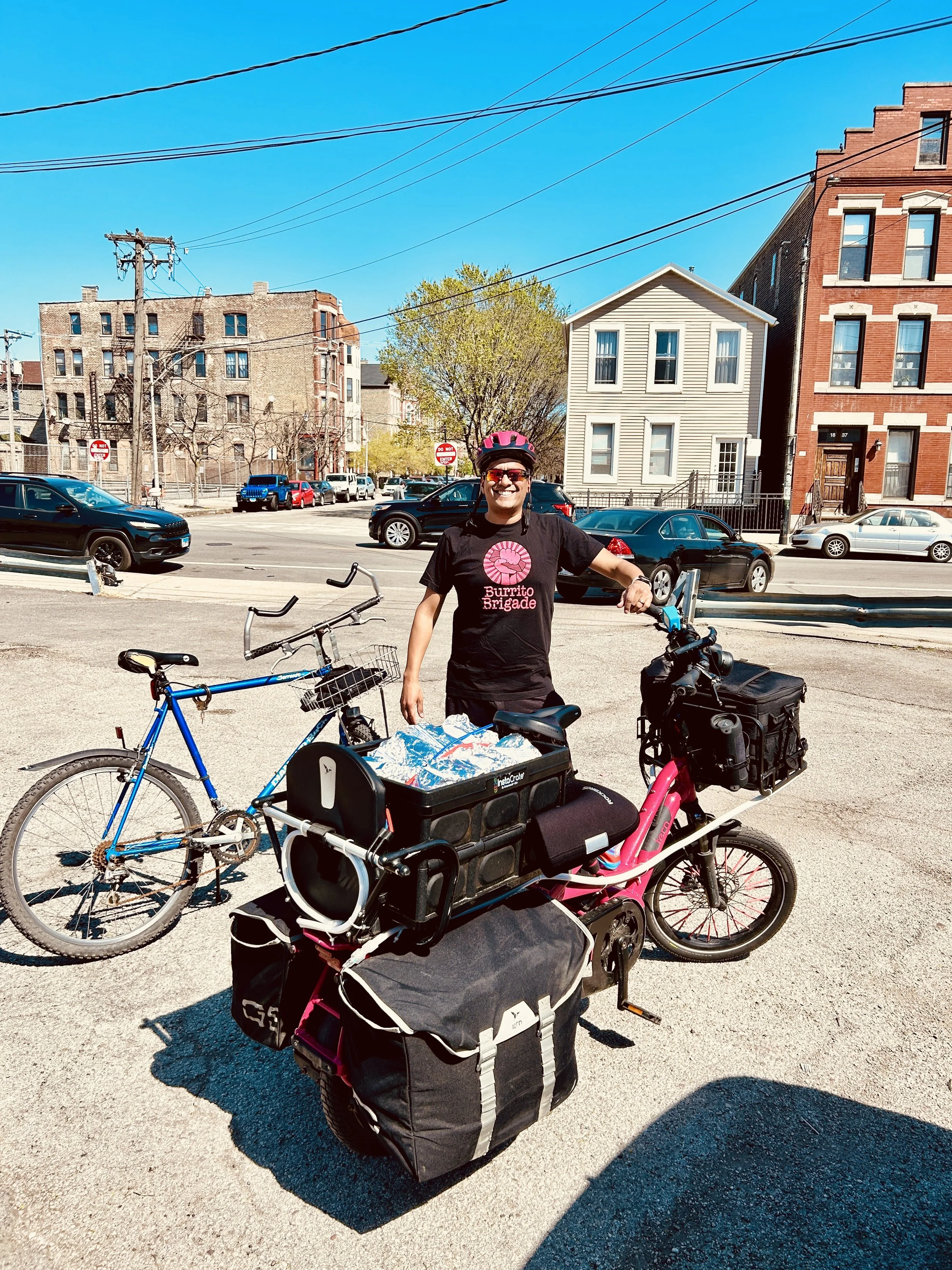 From the perfect days of summer to the frigid months of winter, the Burrito Brigade Bike Team is in the streets passing out burritos. We are always welcoming cyclists that enjoy riding around the city delivering smiles and burritos to hungry Chicagoans. All you need is a bike to join the fun! Learn more and sign up on Eventbrite and check out @cyclingxsolidarity on IG for more info!